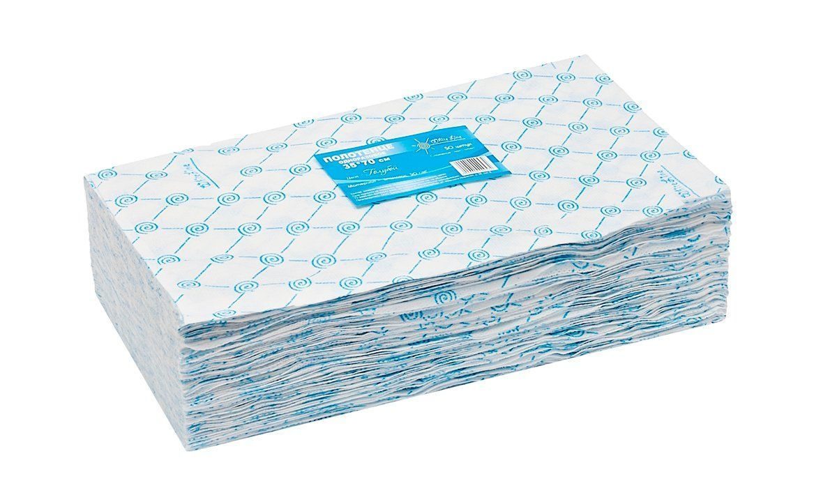 Полотенце малое Вайт Лайн голубое спайленс пачка 35*70 50шт/уп