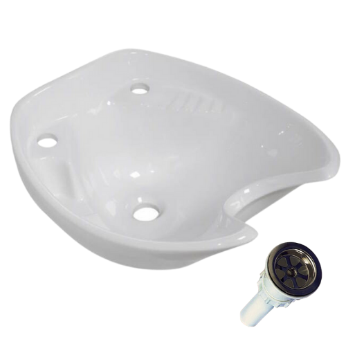 Раковина средняя белая под малый узел в комплекте со сливом для парикмахерской мойки.